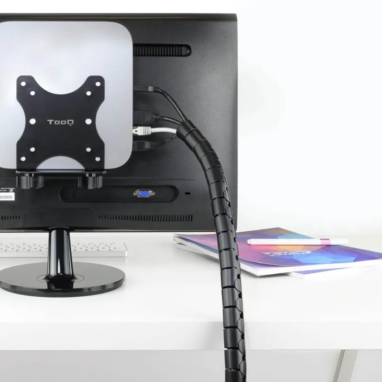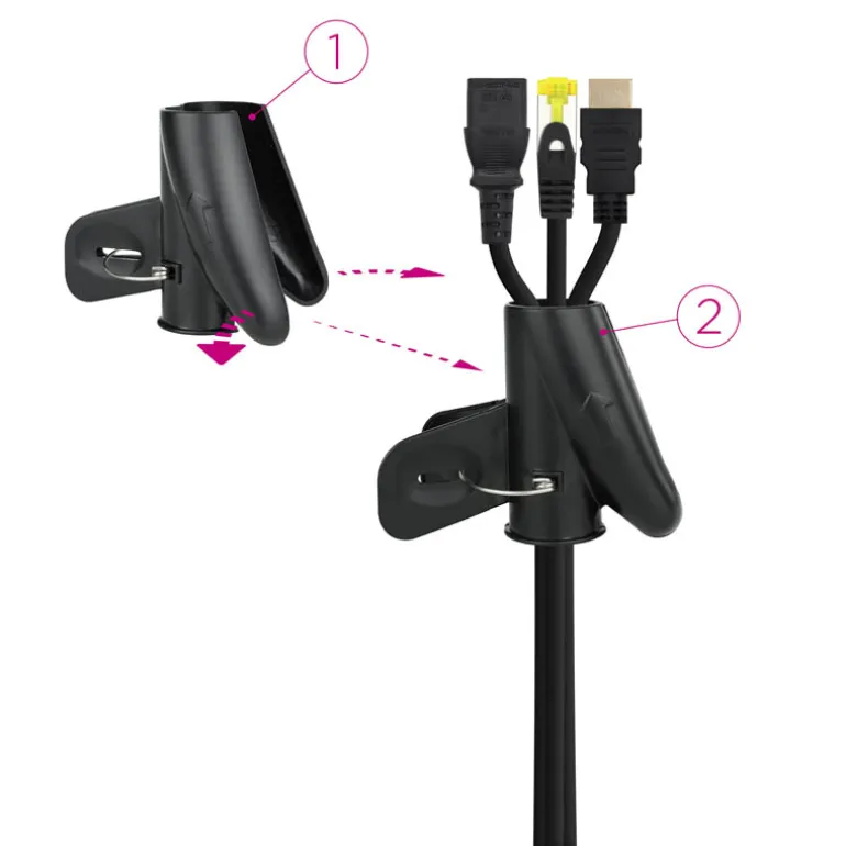 Organizador de cables flexible con capacidad de hasta 25 mm de diámetro. Fabricado en plástico de gran flexibilidad y alta resistencia. Fácil y rápida instalación
