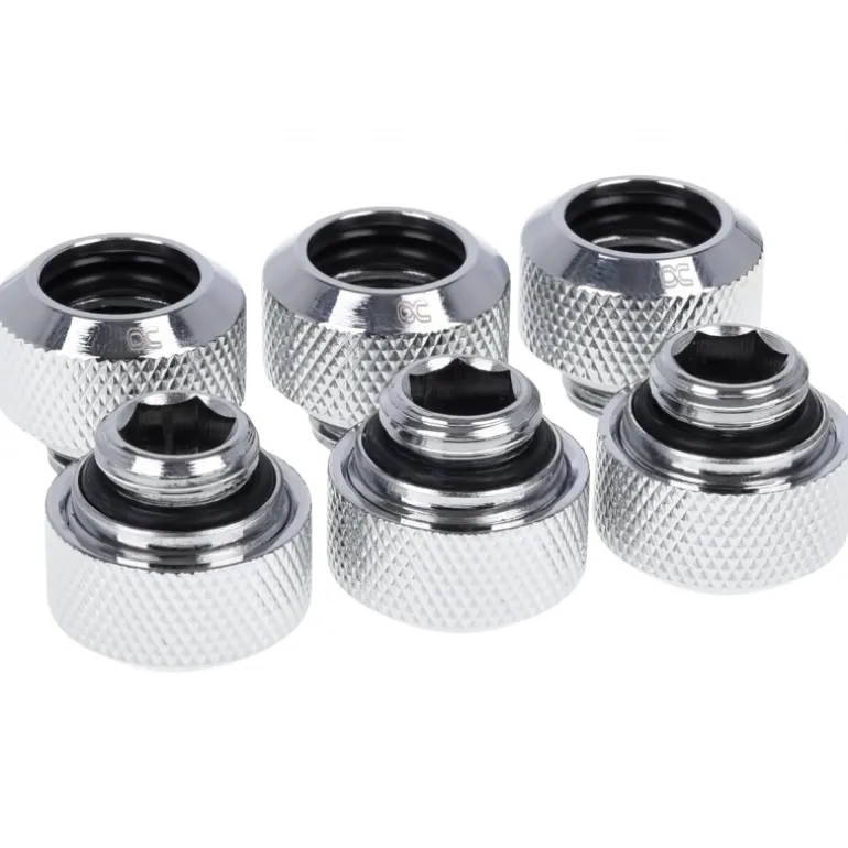 La serie de conectores Eiszapfen de Alphacool posiciona estos conectores dentro de la gama alta. Un procedimiento especial une el recubrimiento externo para mejorar la longevidad del color intenso. Los bordes inclinados de la tuerca se aseguran de que la junta tórica se asiente firmemente contra el tubo duro. Esto proporciona más seguridad en el transporte.