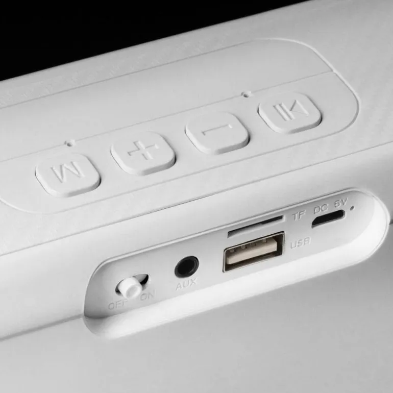Con su diseño compacto y elegante, complementado por una correa de transporte desmontable, este altavoz es la unión perfecta de estilo y funcionalidad, ideal para llevarlo a cualquier parte. ¡Pero eso no es todo! Conéctalo a la televisión u ordenador de tu casa vía bluetooth o mediante el conector auxiliar y transfórmalo en una potente barra de sonido para disfrutar de tus sesiones de cine en casa.