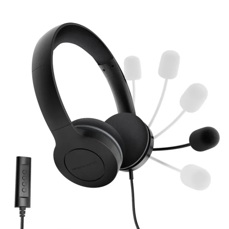 Auriculares para oficina con un diseño on-ear ligero, diadema extensible y almohadillas de espuma acolchadas que proporcionan horas de comodidad absoluta. Su cable trenzado evita que sufras incómodos enredos mientras hablas y mejora la calidad en tus llamadas