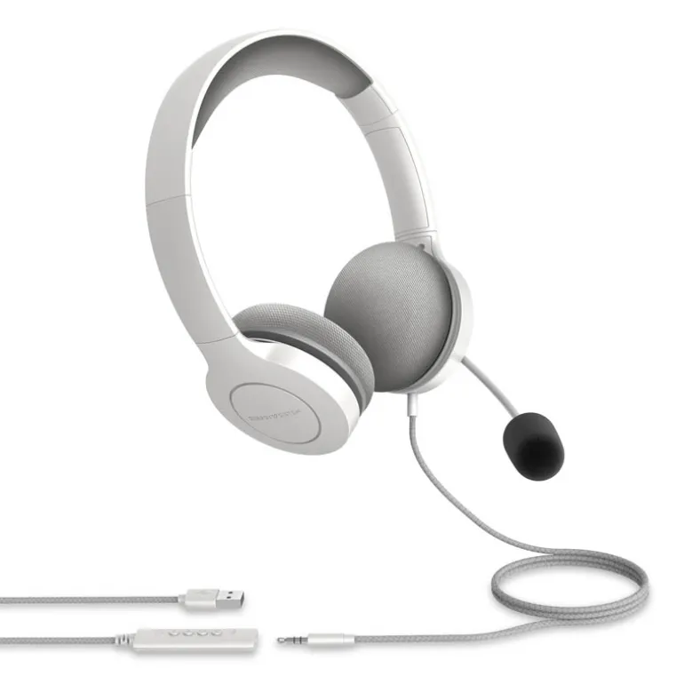 Auriculares con boom mic, diadema con almohadilla, conector mini jack 3,5 mm y adaptador USB para realizar tus videollamadas con la mejor calidad de audio desde cualquier dispositivo. Controla el volumen o silencia el micrófono con el control integrado.