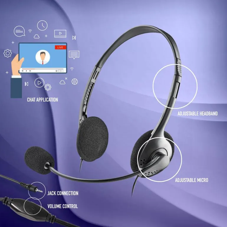 Estos auriculares con cable están diseñados para ofrecer comodidad y calidad de sonido durante las llamadas y el uso multimedia en tu portátil. Son ligeros y cuentan con una diadema ajustable para un ajuste personalizado. El micrófono ajustable y sensible garantiza una transmisión de voz nítida, mientras que el control de volumen te permite ajustar el nivel de audio a tu gusto.