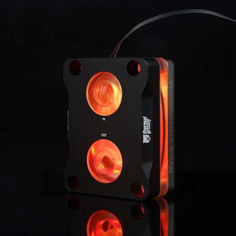 La placa fría incorpora microaletas optimizadas y un sistema de inyección en la superficie del bloque que mejoran el transporte térmico. El diseño reduce la resistencia al flujo de refrigerante, manteniendo un alto rendimiento incluso en configuraciones exigentes.