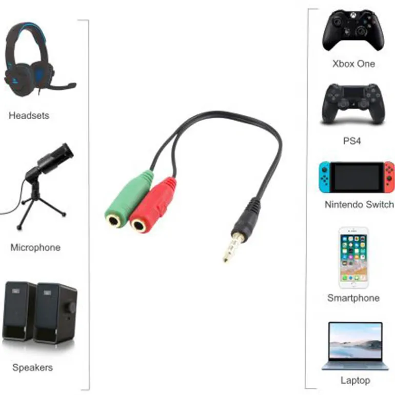- Conectores: 1x 3,5 mm (4 pines) macho – 2x 3,5 mm (3 pines) hembra