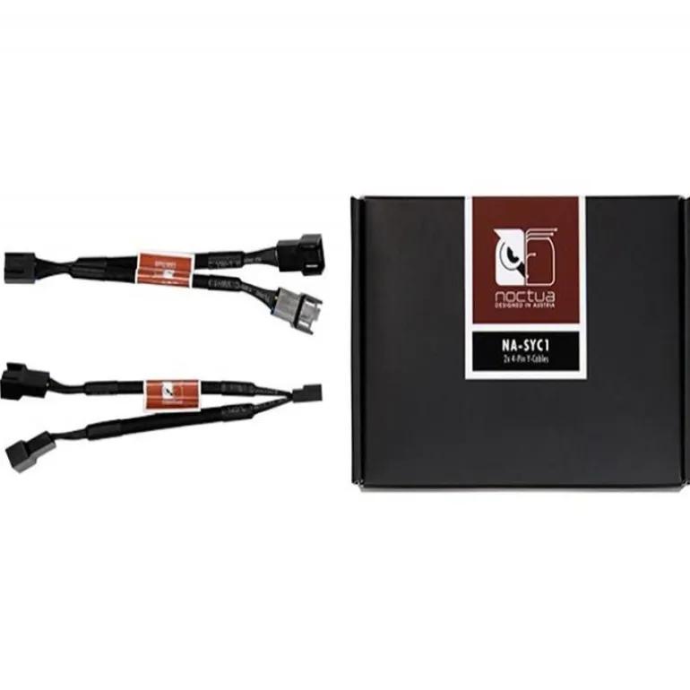 El NA-SYC1 es un conjunto de accesorios de ventilador compuesto por dos cables con forma de Y NA-YC1 completamente enmallados para los ventiladores PWM de 4 pines. Los cables con forma de Y NA-YC1 hacen que sea posible hacer funcionar dos ventiladores PWM de 4 pines con un único conector del ventilador y dejar que la placa base controle la velocidad de ambos ventiladores de manera simultánea. Puede conectar en serie varios NA-YC1 para controlar más de dos ventiladores PWM con un conector.