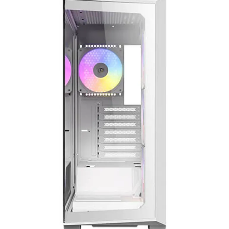 - Ventiladores incluidos: 3 ventiladores inversos PWM ARGB de 120 mm en el lado derecho + 1 ventilador PWM ARGB de 120 mm en la parte trasera