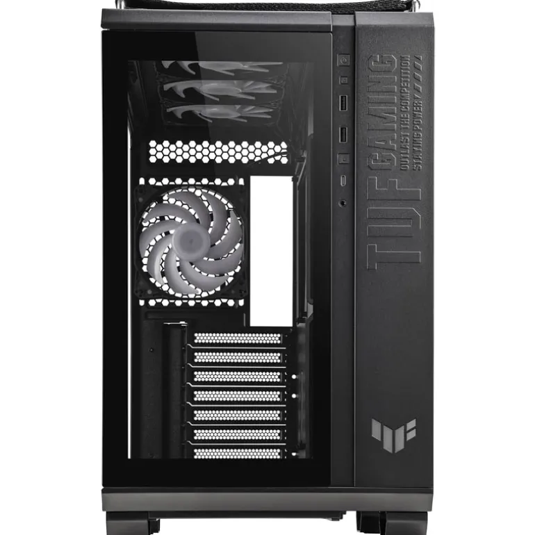 Además de dos puertos USB-A, el panel frontal del TUF Gaming GT502 PLUS cuenta con un puerto USB 3.2 Gen 2 Tipo-C listo para velocidades de transferencia de hasta 10 Gbps.