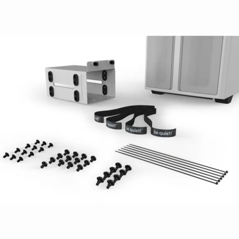 La cubierta de la fuente de alimentación cubre a la perfección los cables y la fuente de alimentación También contiene una doble jaula de disco duro con montajes desacoplados que reducen las vibraciones y ayudan a maximizar el silencio. La jaula también se puede reubicar para instalar un radiador de hasta 360 mm en el frontal. La fuente de alimentación puede instalarse fácilmente por detrás, montada en el soporte de la fuente de alimentación suministrado.