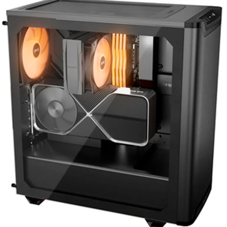 A pesar de sus dimensiones compactas, Pure Base 501 DX Black ofrece suficiente espacio para tarjetas gráficas de gama alta y refrigeradores grandes. Los ventiladores triples o un radiador de hasta 360 mm se pueden instalar fácilmente en la parte delantera, mientras que el área superior proporciona espacio para hasta 2 ventiladores o un radiador de hasta 240 mm.