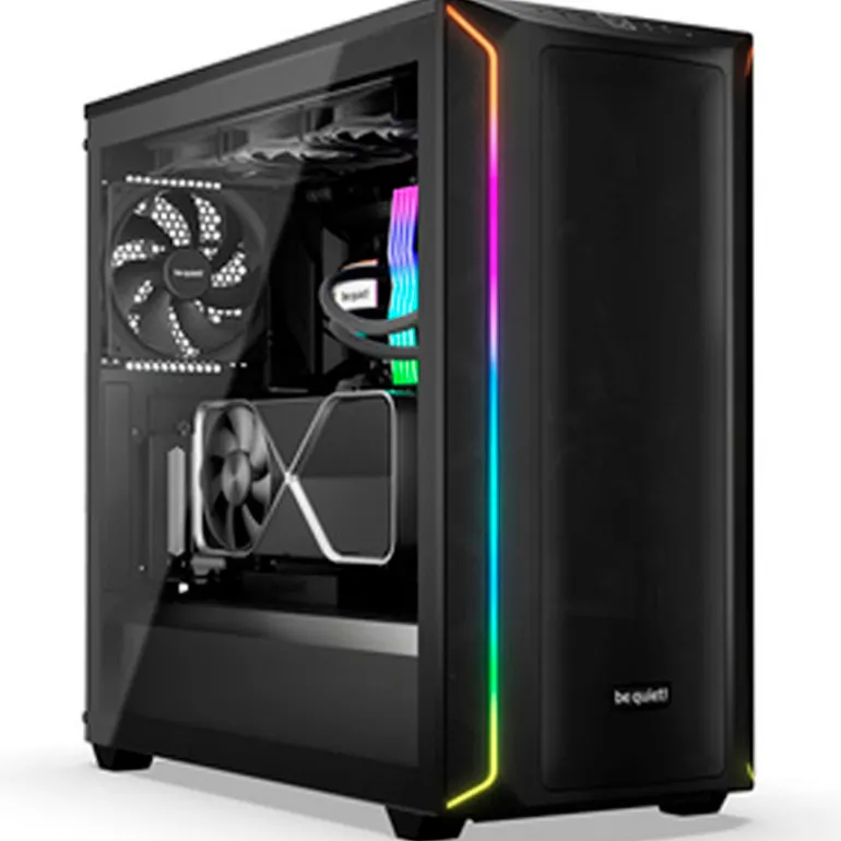 Flujo de aire excepcional, máximo espacio. Shadow Base 800 DX Black es una torre midi optimizada para el flujo de aire con LED ARGB en la parte frontal que ofrece un funcionamiento silencioso con espacio suficiente para componentes extensos como tarjetas gráficas, radiadores de 420 mm o placas base E-ATX.