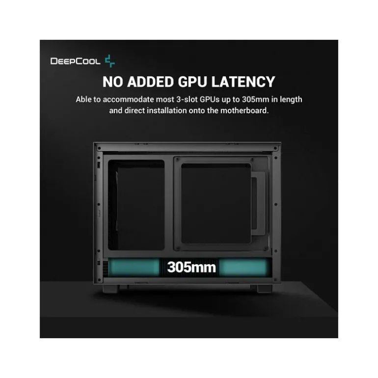 Diseñada para acomodar la mayoría de las GPU de 3 huecos y ventiladores duales que tengan 305 mm de longitud o menos, y que se puedan insertar en la placa base sin asistencia de un cable elevador. ¡Se acabaron las preocupaciones por la latencia de la GPU!