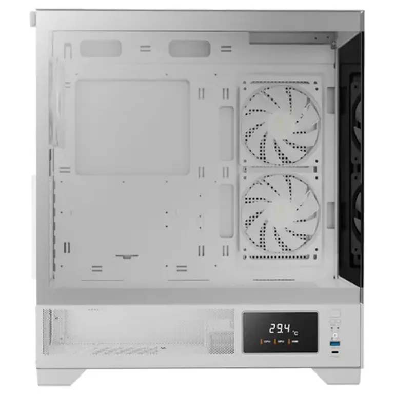 La serie ATLAS M1 está disponible en ediciones en blanco y negro. El estuche cuenta con salidas de aire perforadas con tres ventiladores ARGB PWM incorporados para un flujo de aire óptimo y un monitor personalizable para información del sistema en tiempo real. Disfrute de los beneficios de los paneles de vidrio templado sin costuras que brindan imágenes impresionantes de su construcción.