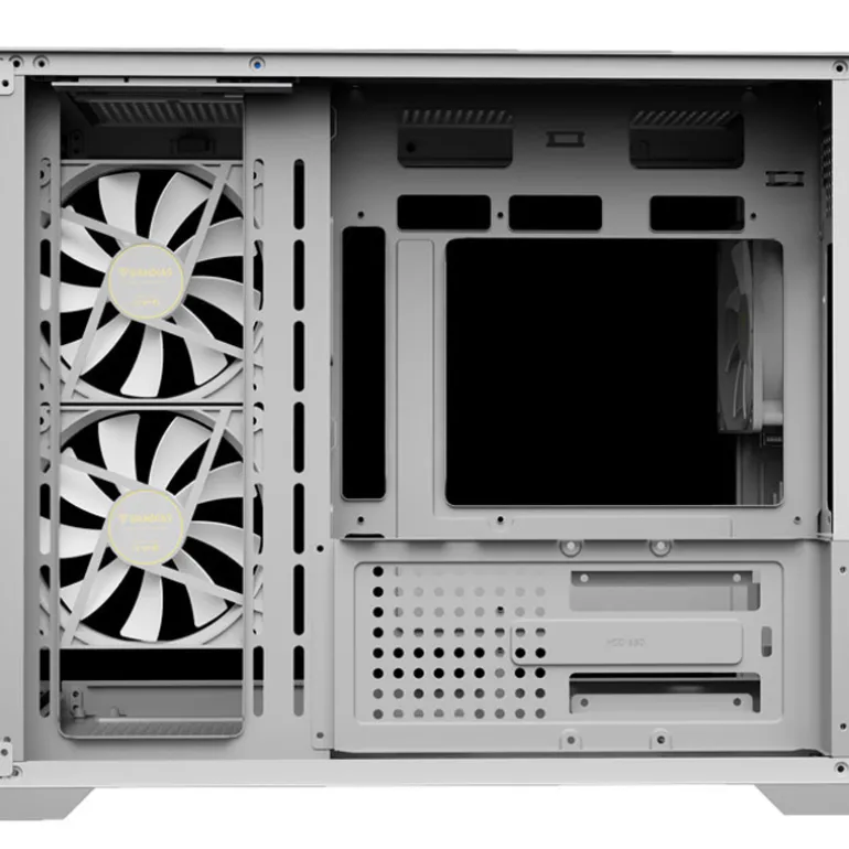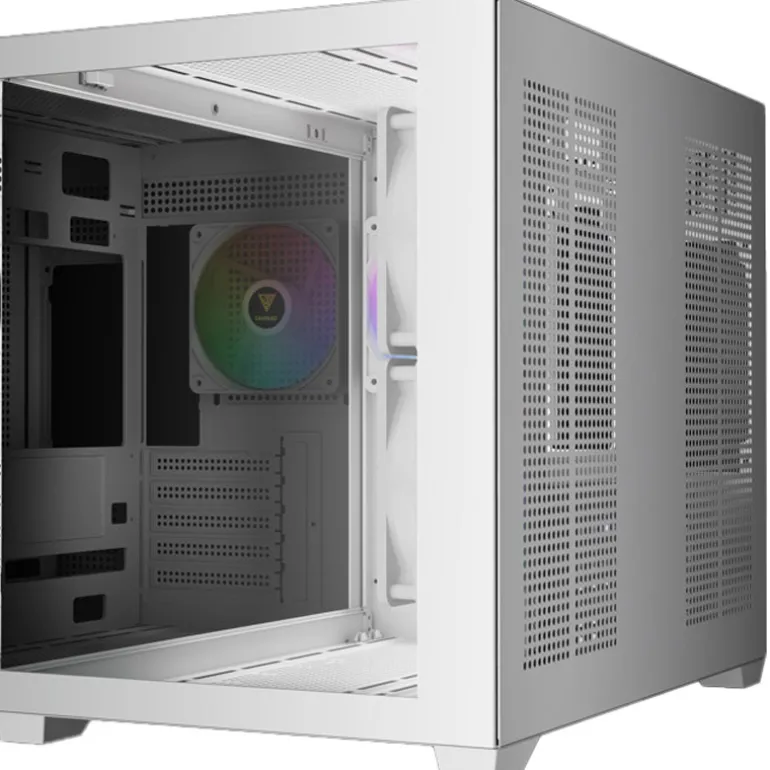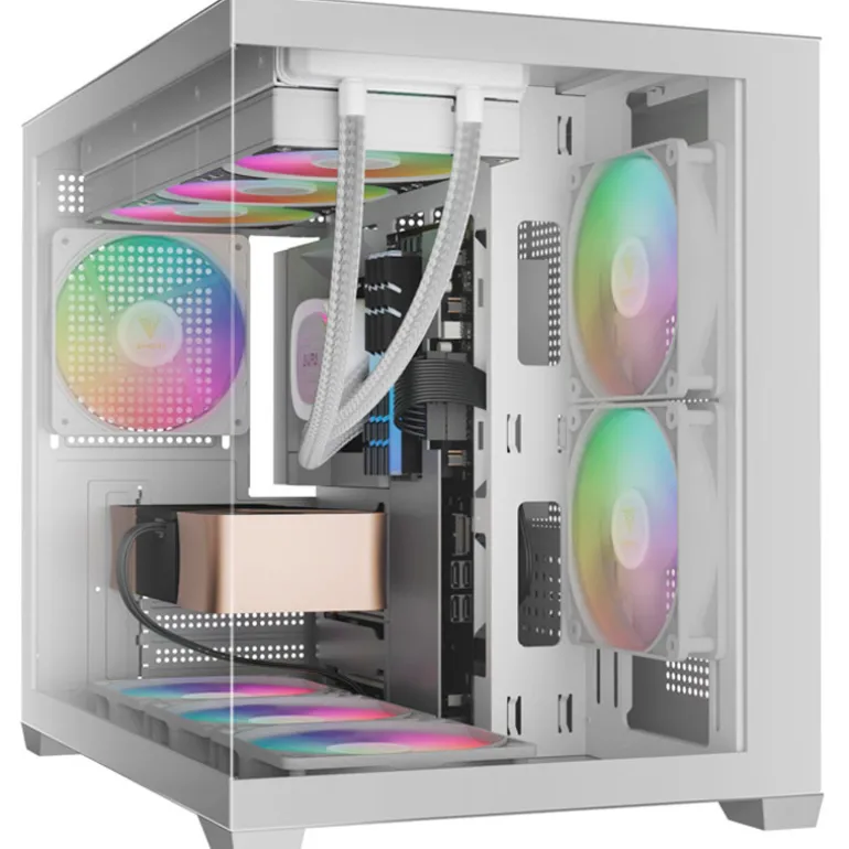 La serie AURA GC10M, disponible en blanco y negro, destaca como una microtorre asequible, caja de doble cámara con un diseño panorámico. La caja viene equipada con tres ventiladores ARGB integrados, compatibilidad interna mejorada y paneles frontales y laterales de cristal templado, lo que le permite mostrar el atractivo estético de su estructura.