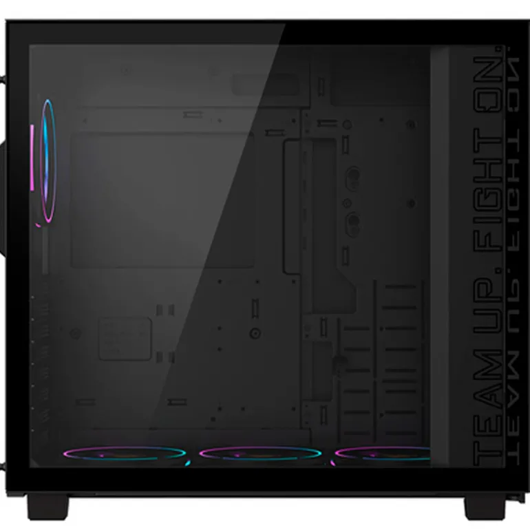 Construido con un panel lateral de vidrio templado negro de 4 mm, haciendo que las piezas de tu PC y la iluminación RGB sean más atractivas y preciosas. El diseño de vidrio no perforado reduce eficazmente el riesgo de fragmentación, permitiendo a los usuarios retirarlo con facilidad y seguridad, prolongando así la vida útil del producto.