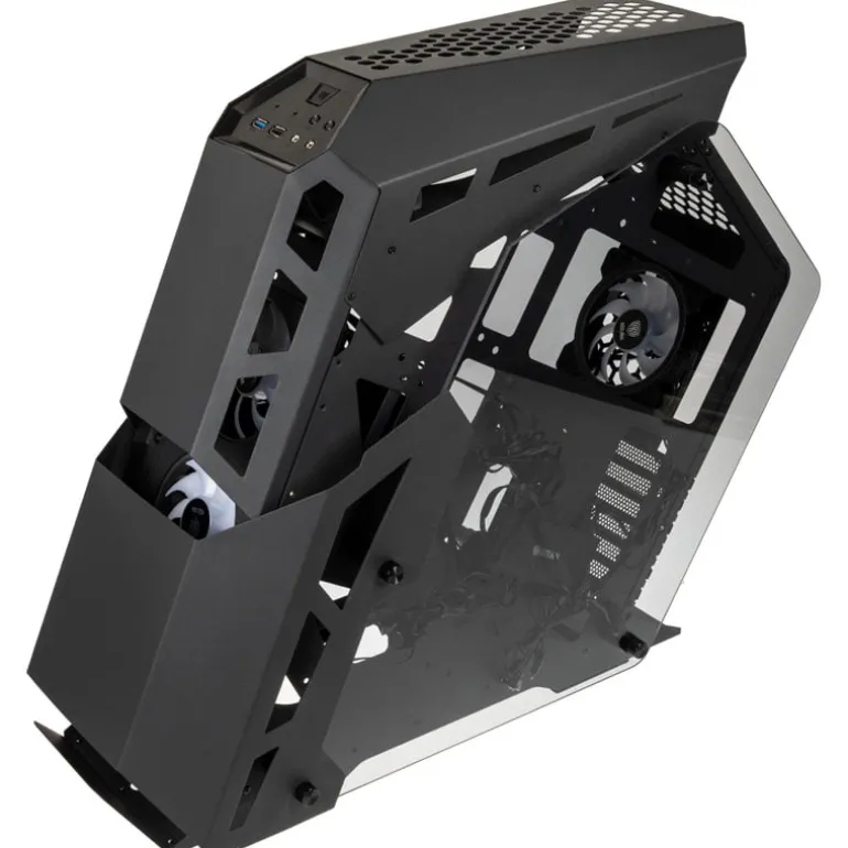 Para respaldar aún más el rendimiento térmico, este estuche se ha preparado para bucles personalizados y admite la instalación de dos radiadores al mismo tiempo.. Se puede acoplar un radiador de 360 ??mm en la parte delantera y un segundo radiador de 240 mm en la parte superior. Gracias al diseño innovador e inusual, la carcasa no solo está predestinada para bucles personalizados, sino que también se muestran adecuadamente en esta carcasa.