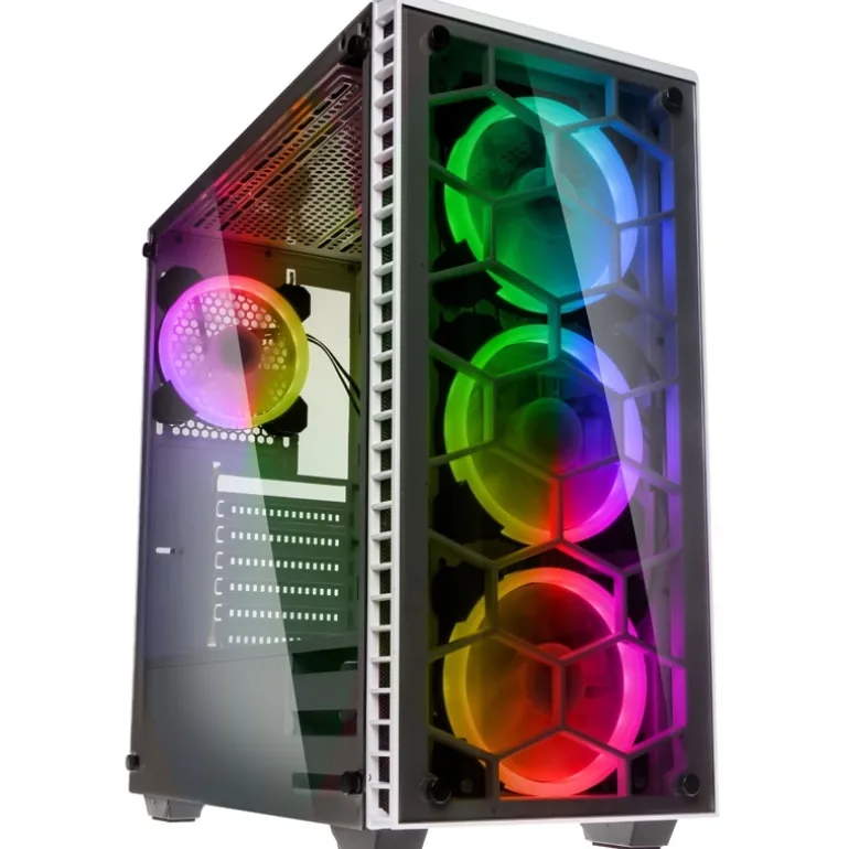PANEL LATERAL / FRONTAL DE VIDRIO TEMPLADO Y CUATRO VENTILADORES RGB PREINSTALADOS