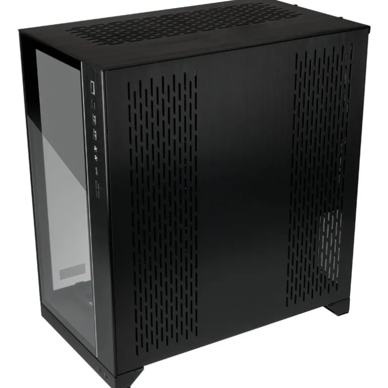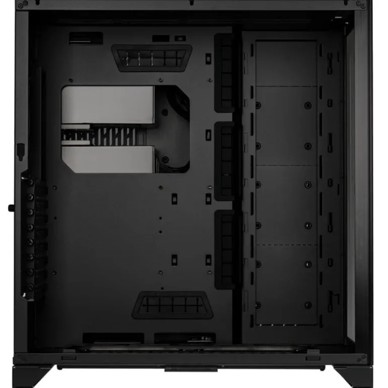 La caja ofrece una elegante fusión de materiales premium, combinando aluminio, vidrio templado y acero. Diseñado para alojar placas base E-ATX, ATX, Micro ATX o Mini ITX, brinda versatilidad. Cuenta con espacio para 6 SSD de 2.5″ y 4 HDD de 3.5″ con intercambio en caliente. En el panel frontal, se encuentran 4 puertos USB 3.0 Tipo-A y 1 puerto USB 3.1 Tipo-C, asegurando conectividad moderna. Facilita tarjetas gráficas de hasta 44,6 cm de longitud, mientras que sus tres ranuras integradas pueden albergar radiadores de 360 mm. Además, admite hasta diez ventiladores de 120 mm, garantizando una óptima refrigeración.