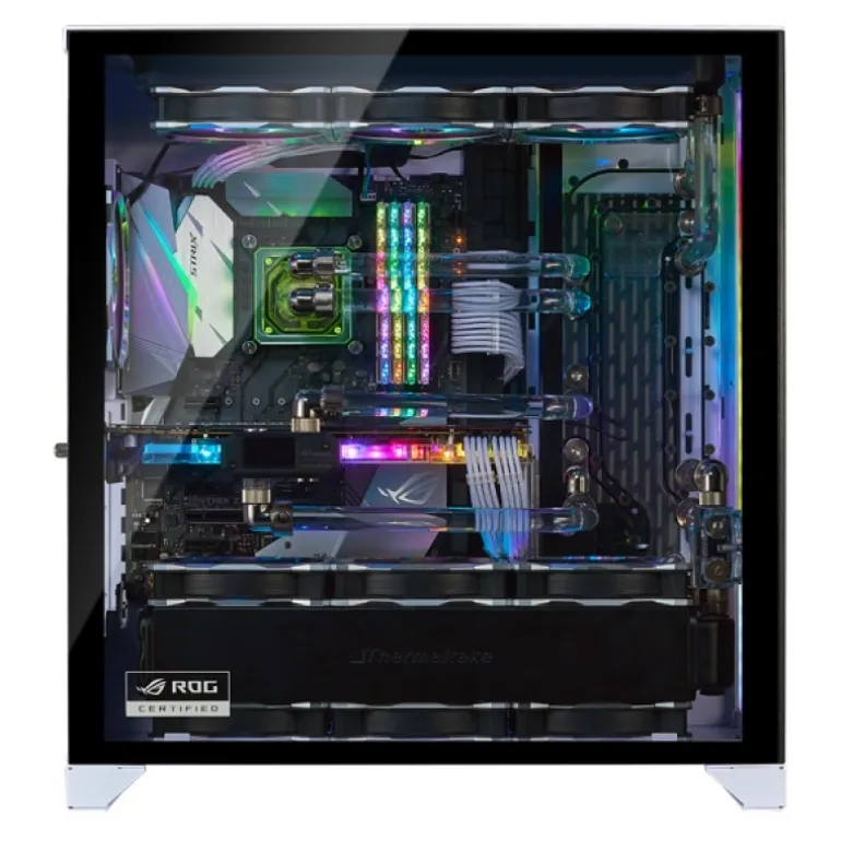 La caja fusiona elegancia y durabilidad a través de una mezcla sofisticada de aluminio, vidrio templado y acero. Diseñado para adaptarse a diversas configuraciones, ofrece espacio para placas base E-ATX, ATX, Micro ATX o Mini ITX, brindando versatilidad en cada construcción. El almacenamiento es amplio y flexible, con capacidad para 6 SSD de 2.5″ y 4 HDD de 3.5″, presentando una función de intercambio en caliente para los HDD. El panel frontal se destaca con 4 puertos USB 3.0 Tipo-A y 1 puerto USB 3.1 Tipo-C, combinando conectividad moderna con practicidad. Además, el chasis acomoda tarjetas gráficas de hasta 44,6 cm y proporciona tres ranuras dedicadas para radiadores de 360 mm, permitiendo la opción de hasta diez ventiladores de 120 mm para un óptimo rendimiento térmico.