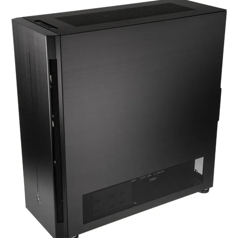 Con el PC-V3000WX TG , Lian Li presenta una caja de torre completa en formato E-ATX con innumerables opciones de montaje para unidades, ventiladores y refrigeración por agua. El chasis de acero con paneles de aluminio puede acomodar grandes radiadores cuádruples. Una tira de LED RGB en la parte frontal de la carcasa , junto con el logotipo iluminado, proporciona una iluminación RGB atmosférica. El enorme interior asegura un fácil acceso a los componentes de hardware y el gran panel lateral hecho de vidrio templado presenta el funcionamiento interno de manera efectiva.