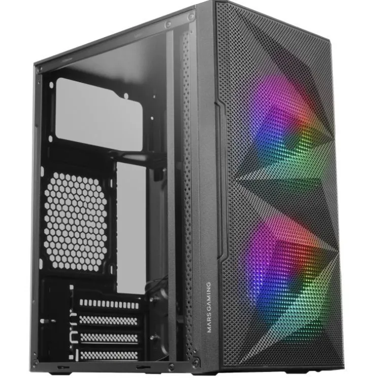 Diseño innovador con rejilla total-MESH con diseño geométrico que potencia la estética y rendimiento, así como ventana lateral total en cristal templado. Configuraciones gaming de alto rendimiento en formato MicroATX y Mini-ITX. 2 ventiladores Fixed RGB frontales y soporte para refrigeraciones líquidas.