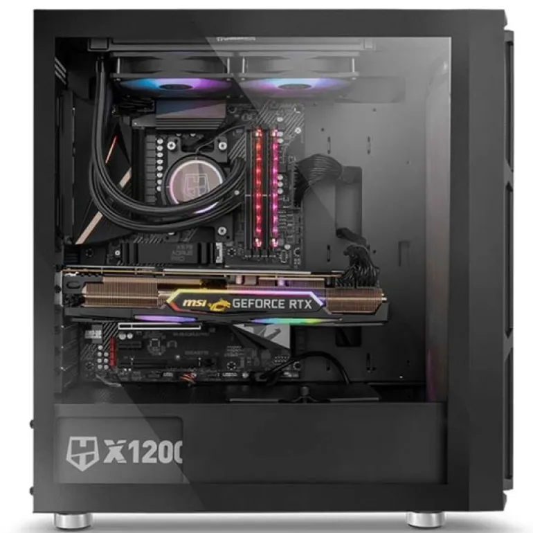 Hummer Nova es una semitorre de gran formato construida con acero de 0,8 mm. Su diseño destaca por el mesh de su frontal junto con el cristal templado de los laterales, que la convierten en el escaparate perfecto en el que albergar una configuración de alto rendimiento manteniendo una temperatura óptima en el interior del PC.