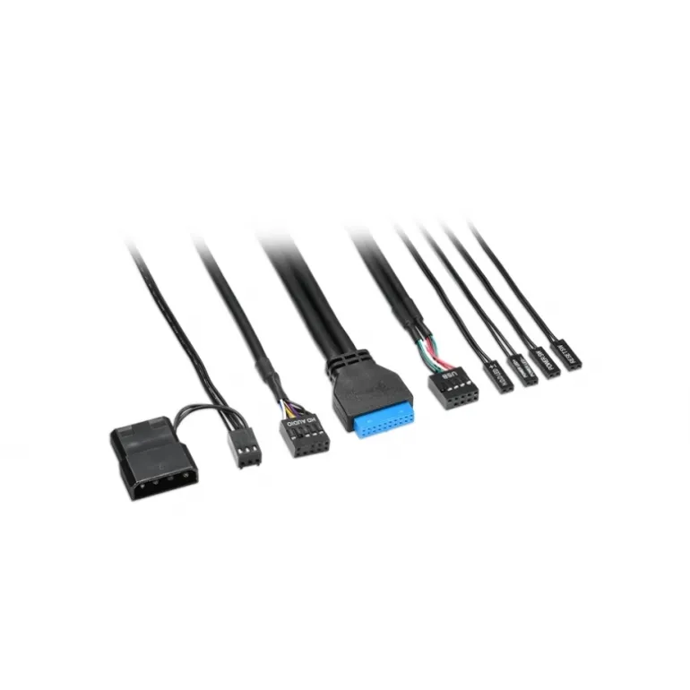 Los conectores de audio para el micrófono y el auricular así como dos puertos USB 3.0, para una conexión fácil de los periféricos más importantes, están situados en la parte superior del panel frontal. Los puertos USB 3.0 se conectan directamente a la placa base a través de un conector de placa base interno de 19 pines.