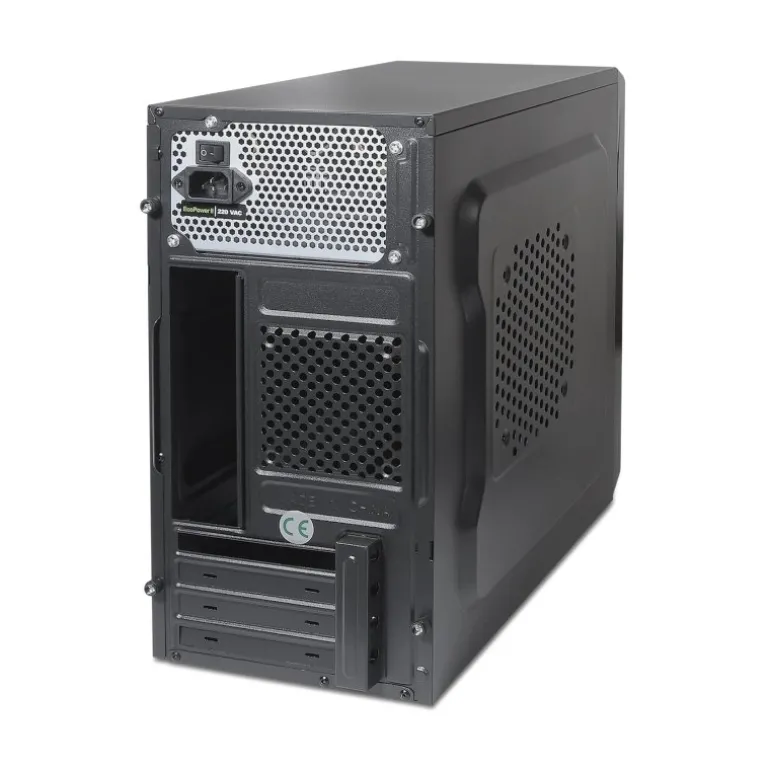 Caja Minitorre MATX con fuente de alimentación. La caja ofrece un diseño compacto para un mayor ahorro de espacio en oficina. Además, el montaje de equipo con esta caja es tan sencillo que se puede completar en menos de 15 minutos.