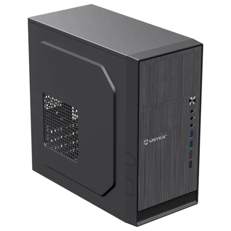 Si estás buscando una caja Micro ATX con un diseño discreto y de corte clásico, la AERO C12 de UNYKAch es la opción perfecta para ti. Esta caja cuenta con un frontal elegante con efecto de aluminio cepillado. Además, la AERO C12 incluye conexiones para dos puertos USB 3.0 y dos puertos USB Type C 2.0, lo que permite una fácil conexión de periféricos y dispositivos externos de alta velocidad. También cuenta con conexiones para HD Audio y micrófono para una experiencia de audio de alta calidad.