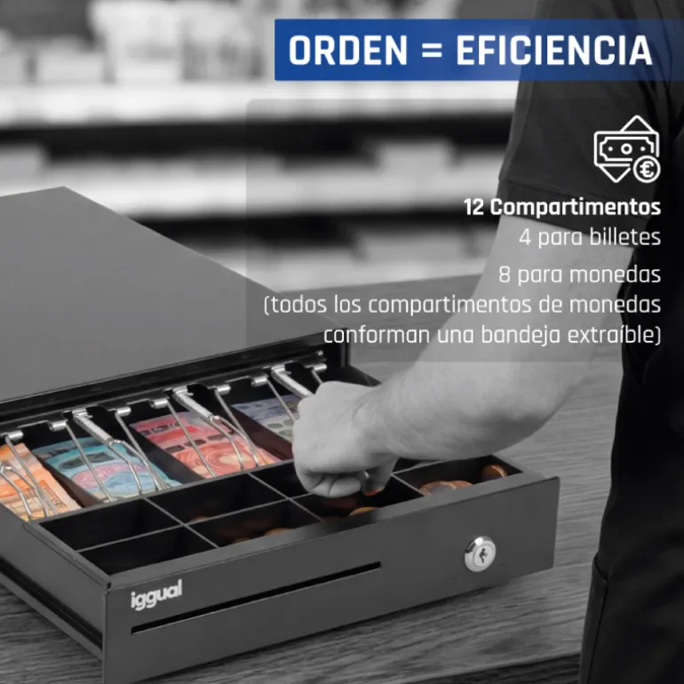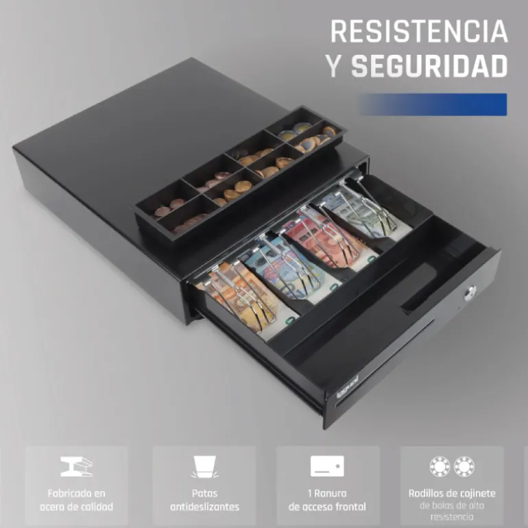 - Son ideales para restaurantes, bares, estaciones de servicio, etc. Tengas un negocio grande o pequeño, existe un cajón portamonedas iggual que se adaptará a él. Además están disponibles en 2 colores: blanco y negro.