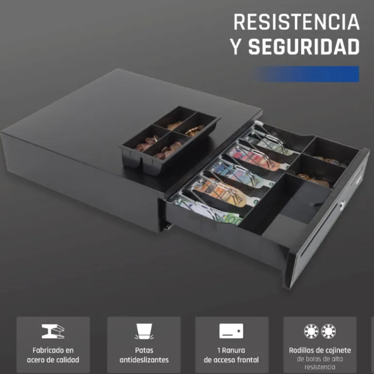 - Son ideales para restaurantes, bares, estaciones de servicio, etc. Tengas un negocio grande o pequeño, existe un cajón portamonedas iggual que se adaptará a él. Además están disponibles en 2 colores: blanco y negro.