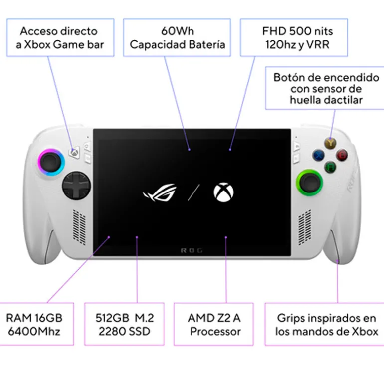 Consola Asus ROG Xbox Ally (2025) Ryzen Z2 A 16GB 512GB 7″ FHD 120Hz W11H Blanco