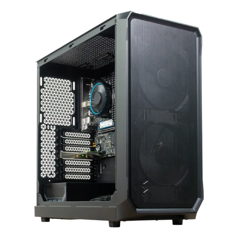 Torre ATX Mid Tower minimalista y robusta, con diseño limpio y estructura optimizada para flujo de aire. Compatible con radiadores de hasta 240 mm, placas base ATX/Micro-ATX, y múltiples ventiladores frontales y superiores. Fabricación sólida con enfoque en funcionalidad y gestión térmica.