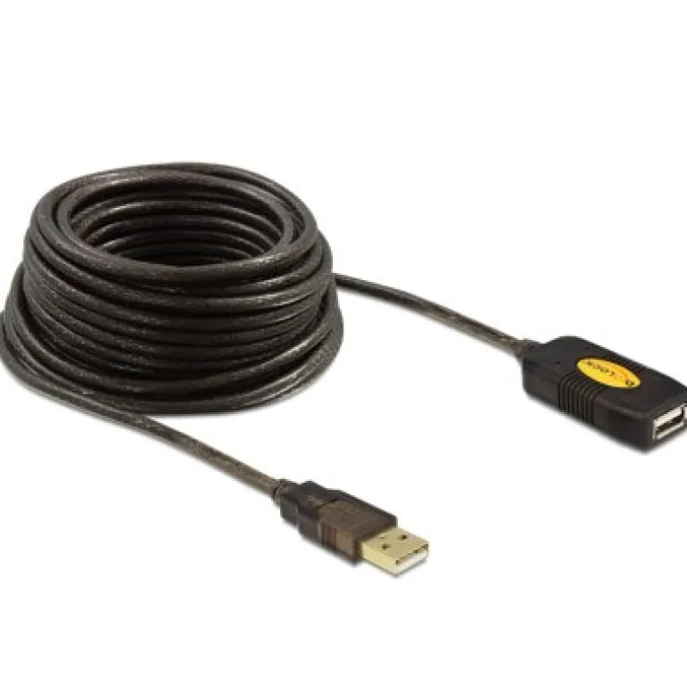 Este cable USB 2.0 de Delock se puede conectar a un puerto USB activo y permite una distancia de 10 m. Si conecta un alargador adicional de 10 m, puede prolongar el puerto USB hasta 20 m.