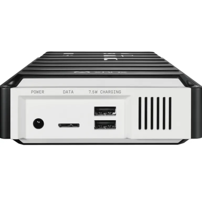 El disco WD_Black鈩 W para que cargar el equipo y los accesorios de videojuegos sea aún más sencillo. Se puede colocar tanto en vertical como en horizontal, lo que permite que el sistema de videojuegos mantenga los dispositivos cargados y listos para entrar en acción.