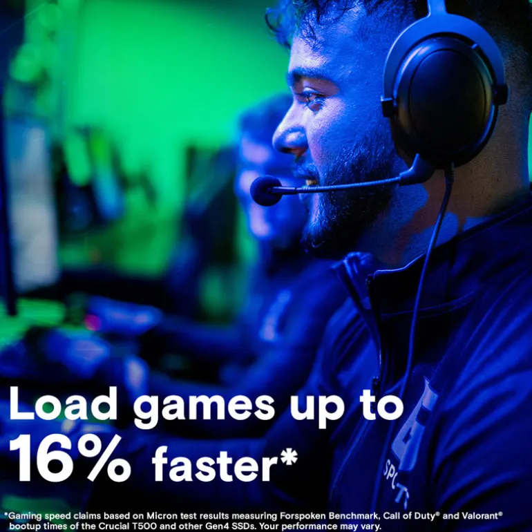 Potencie el rendimiento de su sistema con la SSD NVMe Crucial T500 Gen4 Lucha mejor. Eleva tu PS5TM juega con la SSD Crucial T500 Gen4, tu aliado perfecto en el juego.