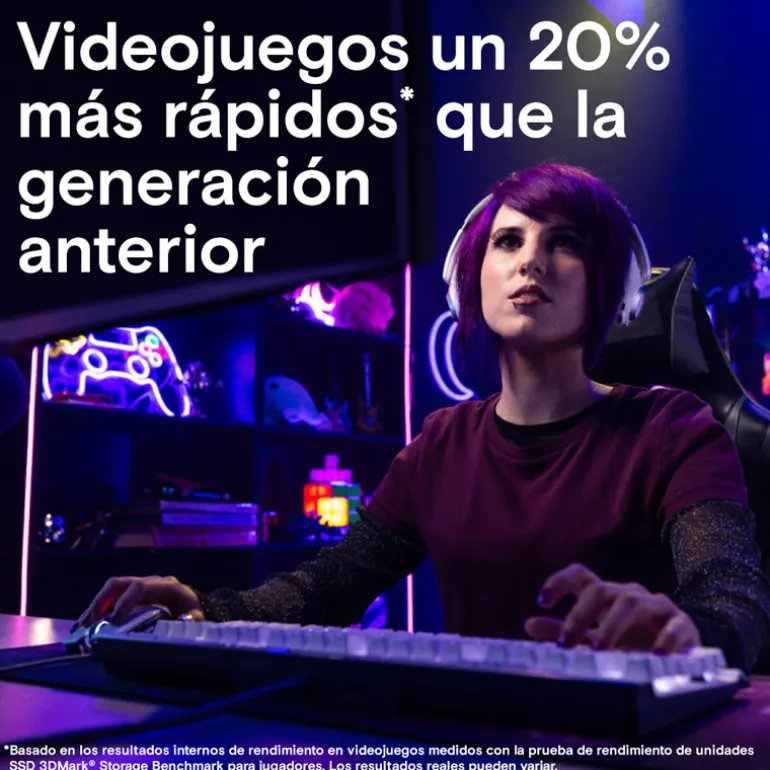 La SSD Crucial T700 PCIe® 5.0 NVMe® ofrece velocidades de hasta 12 400 MB/s de lectura secuencial y hasta 11 800 MB/s de escritura secuencial (hasta 1500 K IOPS de lectura/escritura aleatoria) para acelerar los videojuegos, la edición de vídeo, el renderizado 3D y las aplicaciones de alto rendimiento.