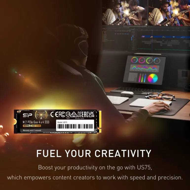 Equipado con interfaz PCIe Gen4 x4 NVMe, el US75 alcanza velocidades de lectura de hasta 7.000 MB/s y escritura de hasta 6.500 MB/s, permitiendo trabajar con archivos pesados, renderizados y cargas intensivas sin cuellos de botella.