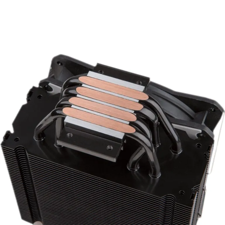 Dispone de 4 heatpipes de cobre de alto rendimiento con una excelente conductividad térmica, su base es de aluminio así como la columna central que da soporte y firmeza al heatsink.