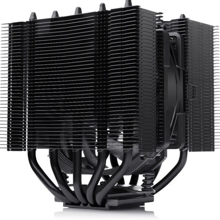 El NH-D12L chromax.black es una versión totalmente negra del galardonado refrigerador de CPU de baja altura y 120 mm NH-D12L de Noctua que ha sido concebido para combinar un rendimiento de refrigeración silencioso excepcional con una compatibilidad de carcasa superior. Con una altura de solo 145 mm (13 mm menos que los modelos normales de 120 mm de Noctua), se adapta a muchos gabinetes de 4U, así como a cajas de torre más estrechas que anteriormente se habían limitado a soluciones con ventiladores de 92 mm. Al mismo tiempo, su diseño de doble torre de cinco tubos de calor y el ventilador NF-A12x25r de 120 mm de última generación le permiten alcanzar un nivel de eficiencia que supera muchos modelos de 120 mm de altura completa.