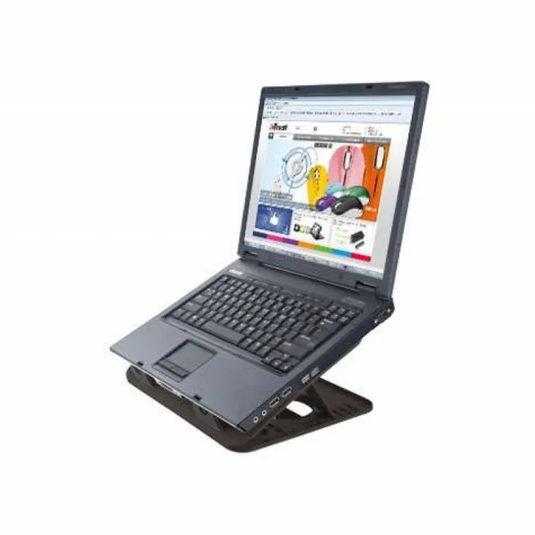 Soporte de ordenador portátil con dos ventiladores silenciosos integrados, que le permite adoptar una posición cómoda mientras escribe y protege frente a sobrecalentamiento. Diseño ajustable a 8 niveles que permite levantar e inclinar la pantalla y el teclado de su ordenador portátil para mayor comodidad. Refrigera el ordenador con mayor nivel de eficacia y protege su mobiliario o piernas del calor. Ideal para cualquier ordenador portátil, netbook o MacBook con tamaños de pantalla de hasta 16″. Ventiladores alimentados por USB: no requiere conexión a la corriente eléctrica. Protectores de caucho para evitar que el ordenador se deslice y se raye. El enchufe y el cable USB pueden colocarse dentro del soporte cuando no se estén utilizando.