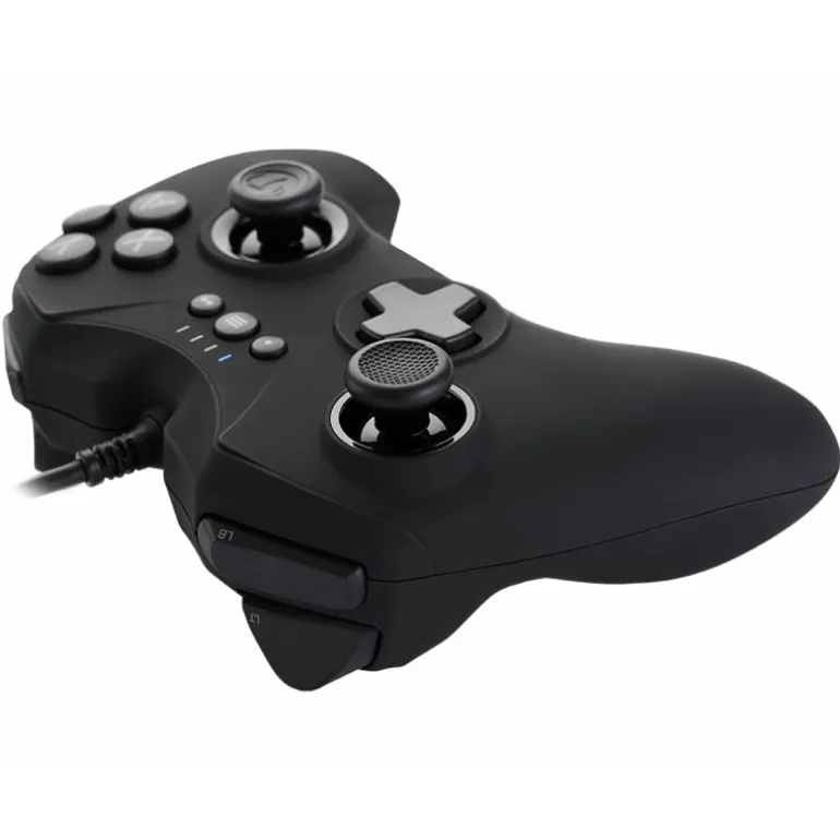 El GC-100XF es un mando para PC (XInput y DirectInput8) que se ajusta a todos los tamaños de mano. Apreciado por los gamers debido a su insuperable relación calidad-precio, este mando está hecho para durar. Su superficie de tacto suave garantiza un agarre cómodo, incluso tras largas sesiones de juego. Los dos joysticks analógicos asimétricos son ideales para shooters en PC. También cuenta con 6 botones de acción, 2 gatillos, 2 botones superiores y una cruceta de 8 direcciones.