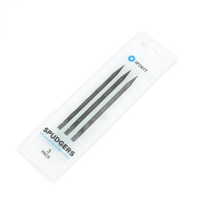 Un spudger es una herramienta antiestática resistente que se puede usar para una variedad de propósitos al reparar dispositivos electrónicos. La herramienta de 5 «está hecha de nailon y tiene un extremo plano y un extremo puntiagudo.» Las propiedades flexibles y antiestáticas lo hacen ideal para trabajar con componentes sensibles sin temor a golpearlos o rayarlos.