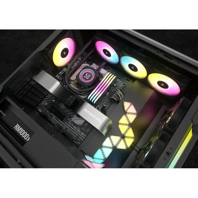 El refrigerador líquido para CPU CORSAIR iCUE H150i ELITE LCD XT ofrece una refrigeración potente y personalizada para su CPU; además, consta de una pantalla LCD personalizada que le permite visualizar GIF, imágenes e información del sistema. Los ventiladores CORSAIR AF RGB ELITE PWM generan un flujo de aire silencioso increíble, con velocidades de hasta 2.100 rpm, mediante la tecnología AirGuide para lograr una refrigeración concentrada que dispersa el calor a lo largo de un radiador de 360 mm.