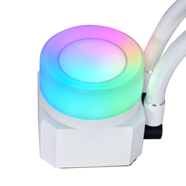 La bomba Galahad II Trinity Performance de color blanco, impulsa el rendimiento con su tamaño ampliado para mejorar la eficiencia de enfriamiento. Ofrece opciones de diseño personalizables con tres tapones intercambiables y efectos de iluminación ajustables. Su radiador de aluminio de alta densidad de 32 mm disipa el calor eficazmente. Los ventiladores LCP de alto rendimiento se pueden conectar en cadena para una mayor disipación de calor. El conector de tubería de 45° permite una instalación versátil. La instalación es sencilla gracias a las placas traseras rediseñadas y se incluye pasta térmica. El software L-Connect 3 permite un control preciso de la iluminación y la velocidad, y la conexión es sencilla con el controlador integrado. Se pueden conectar dispositivos ARGB y ventiladores adicionales para controlarlos a través de L-Connect 3. Se requiere ARGB de 5V para la sincronización con la placa base.