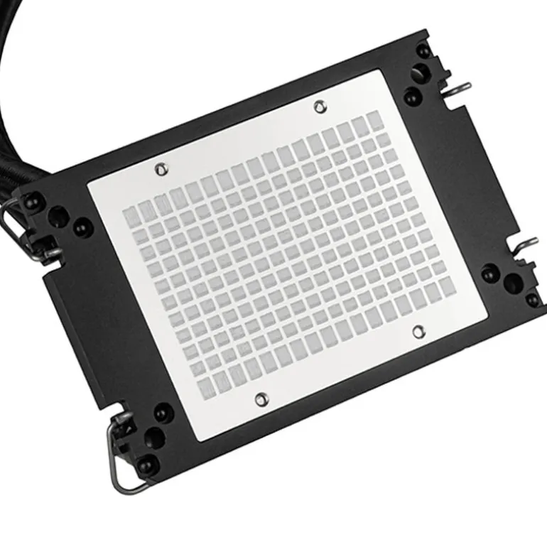 El bloque de agua está construido con cobre niquelado y una base de cobre con superficie de refrigeración activa para asegurar toda la cobertura de los procesos clave en las CPUs basadas en Sapphire Rapids.
