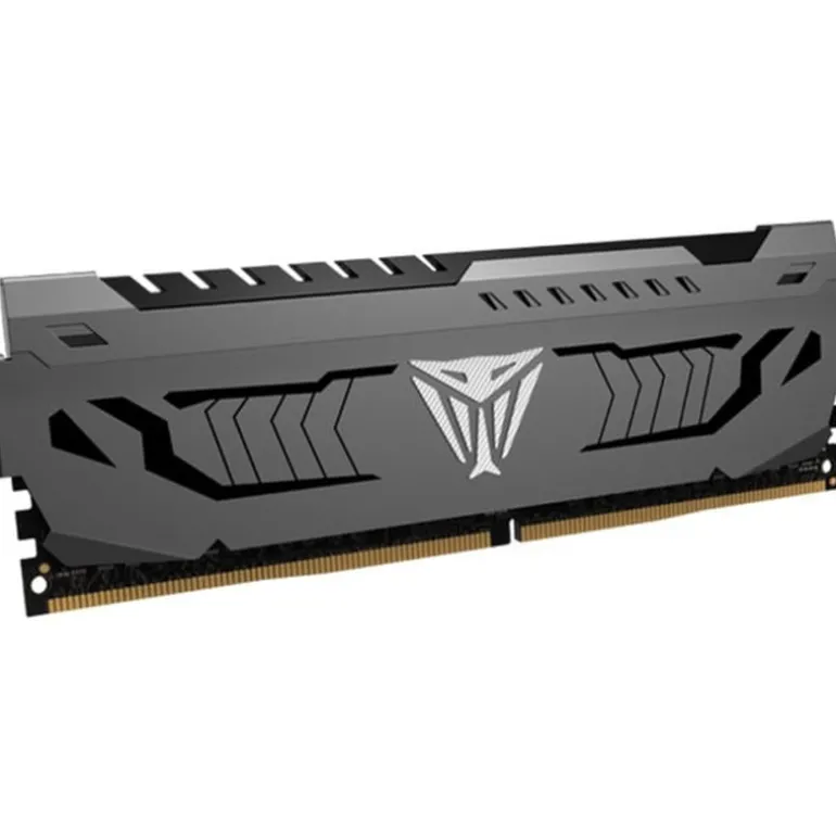 La Patriot Viper Steel DDR4 16GB (1×16GB) 3200MHz CL16 es un módulo UDIMM de 288 pines con perfil Intel XMP 2.0 y voltaje de 1,35 V, pensado para mejorar el rendimiento del PC con una configuración rápida y estable, en acabado gris.