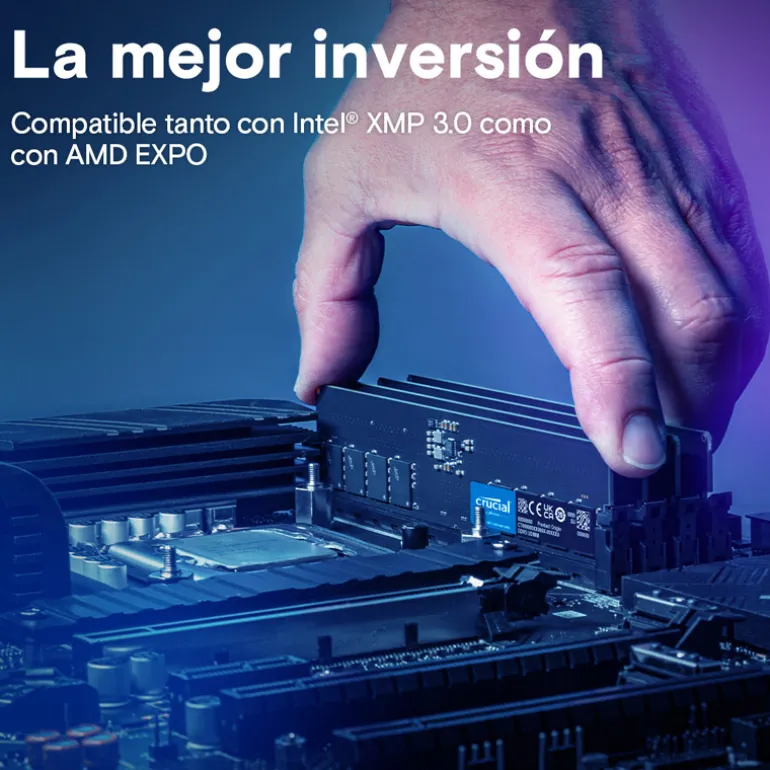 Como marca de consumo integrada verticalmente de Micron, millones de usuarios confían en Crucial por su fiabilidad, rendimiento y compatibilidad. Al contrario de lo que ocurre con los ensambladores de módulos, nuestra relación única con Micron nos ha llevado a colaborar en el campo de la ingeniería a un nivel mucho más profundo para sacar el máximo rendimiento a nuestros productos sin comprometer su fiabilidad. Con los más de 43 años de excelencia en fabricación que ostenta Micron y los más de 25 años de desarrollo de productos para el mercado de consumo de Crucial, las Crucial DDR5 ofrecen además una garantía limitada de por vida9 y un potente rendimiento en el que puede confiar. Cuando se trata de memorias, no se conforme con menos.