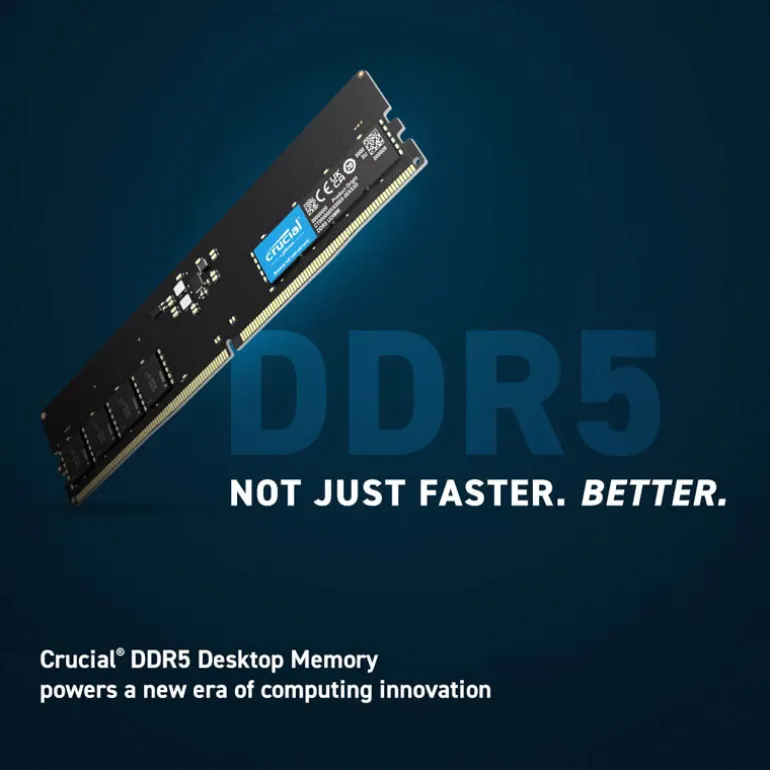 Crucial DDR5 da un gran paso adelante en ingeniería con respecto a la generación anterior con dos canales independientes de 32 bits por módulo para un rendimiento optimizado. Diseñado con ECC en la matriz (ODECC) a nivel de componentes para una estabilidad a largo plazo, Crucial DDR5 está diseñada para mantener la misma confiabilidad que la generación anterior, incluso con las rigurosas demandas de la informática de próxima generación.