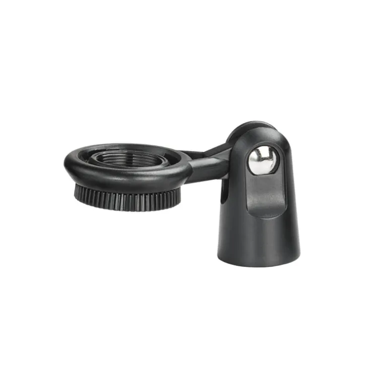 Soporte para pedestal con rosca pivotante que se acopla perfectamente al trípode incluido o a un pedestal para micrófono convencional