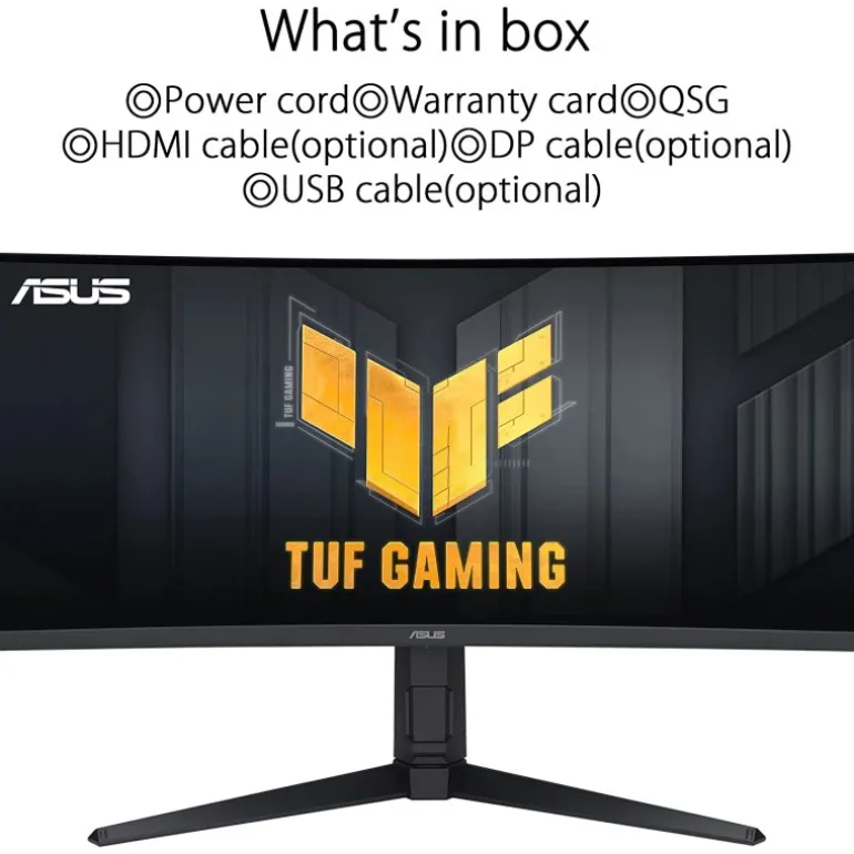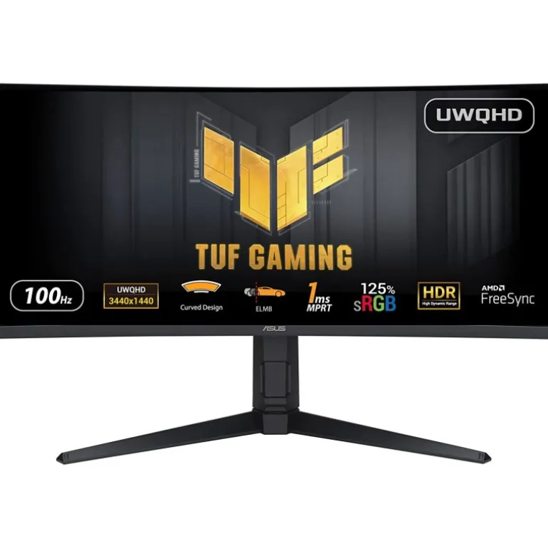 El TUF Gaming VG34VQEL1A es un monitor gaming curvo 1500R ultrapanorámico de 34 pulgadas QHD (3440 × 1440) con una frecuencia de actualización de 100 Hz y un tiempo de respuesta de 1 ms (MPRT) que ofrece una experiencia de juego extremadamente envolvente. Cuenta con la exclusiva tecnología Extreme Low Motion Blur (ELMB) y AMD FreeSync鈩ás, también viene equipado con la tecnología de alto rango dinámico que es compatible con el formato HDR10 y cubre el 125 % de la gama de colores sRGB para garantizar un gran contraste y colores reales.